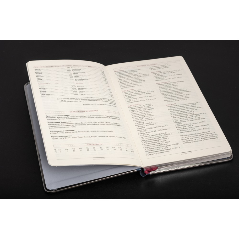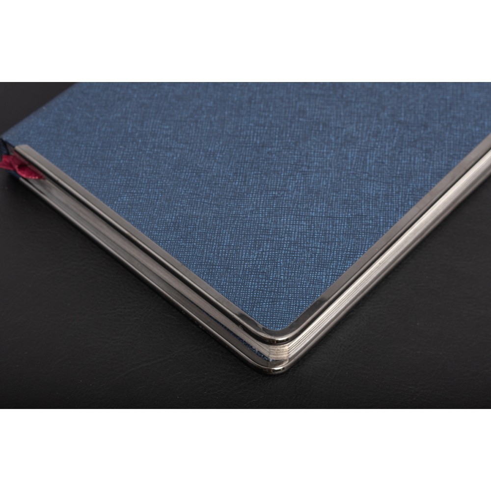 Оформить заказСиний ежедневник формата А5 доступен в твердом переплете. Эффектный рельеф обложки с благородным матовым эффектом напоминает натуральную кожу. Солидный и респектабельный образ создается с помощью металлической окантовки. Его блеск усиливается, чтобы соответствовать разрезу. Скругленные углы ежедневника подчеркивают изящество и элегантность. Недатированный блок состоит из 272 переплетенных страниц. Бежевая бумага снижает усталость от работы. Плотность листа 70г/кв. Обновлена справочная информация (единицы измерения, часовые пояса, номера телефонов и т. д.) на 19 страницах и добавлены тонкие шелковые закладки для более удобной навигации. Вы можете заказать тиснение на обложке этого дневника.